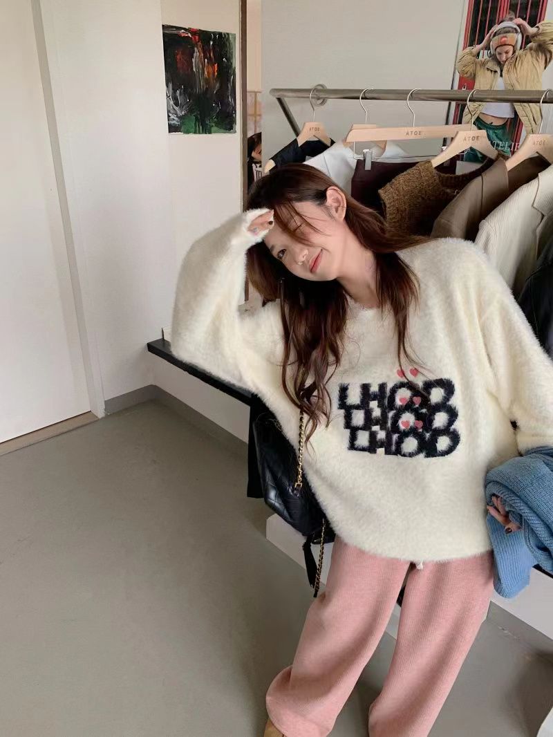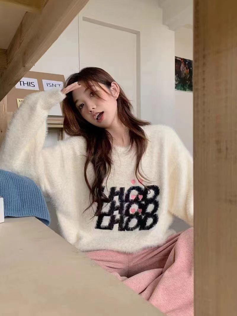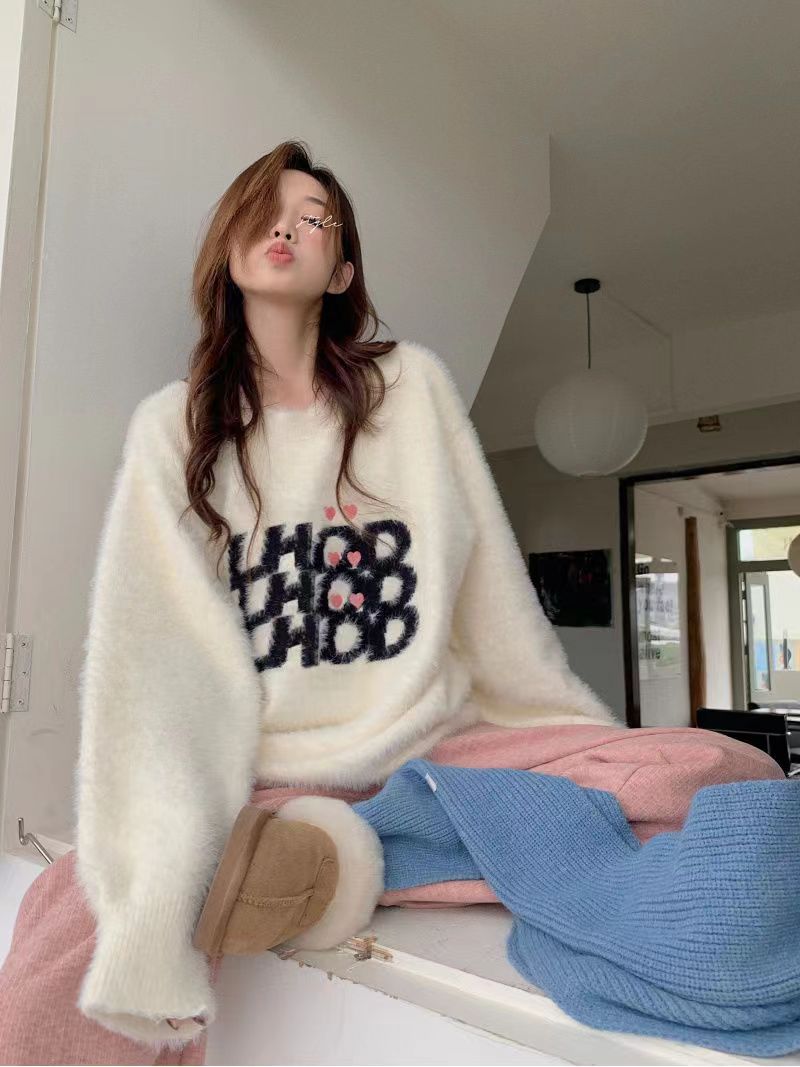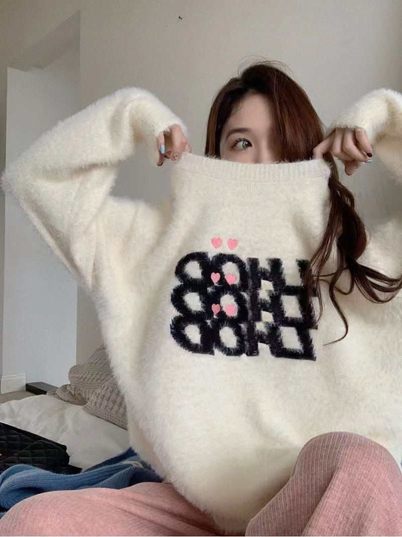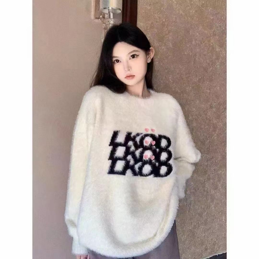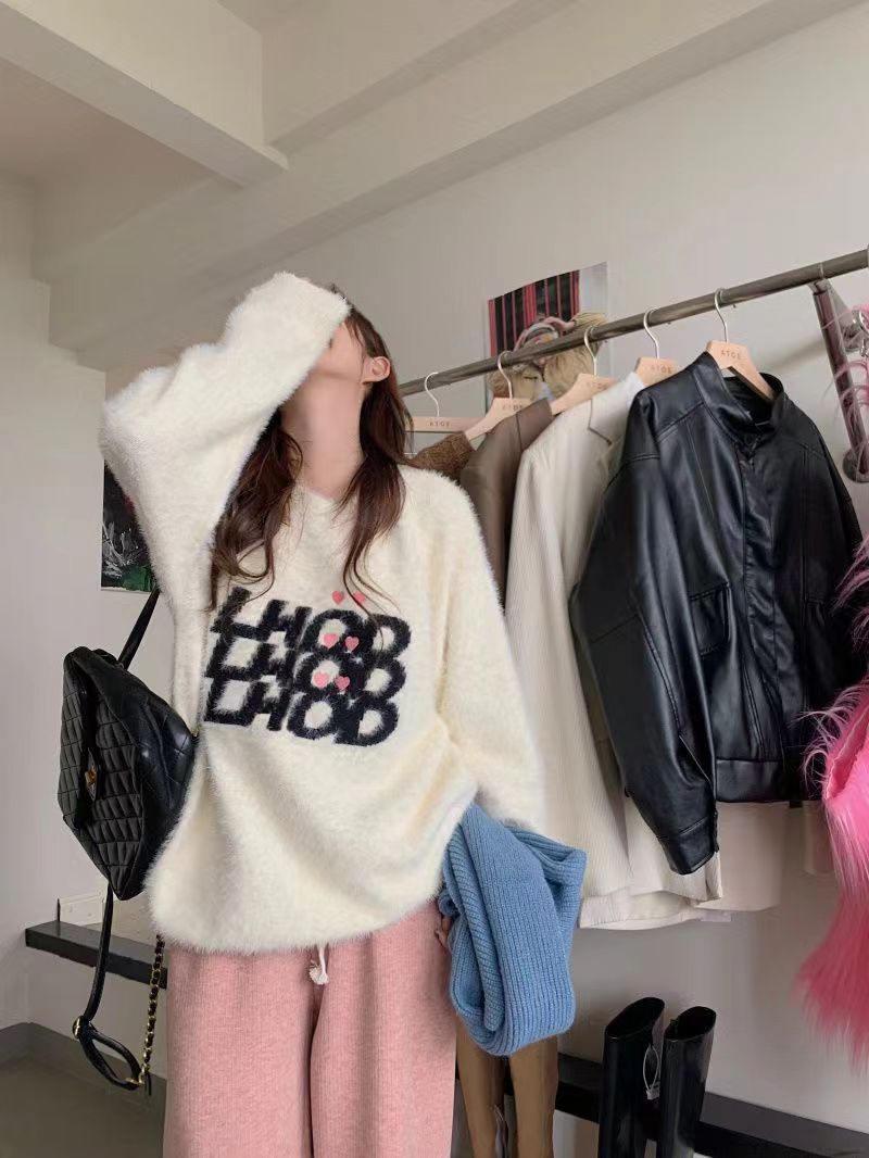 仿水貂绒毛衣秋冬慵懒风女装字母冬季套头宽松针织衫上衣毛衣23123104