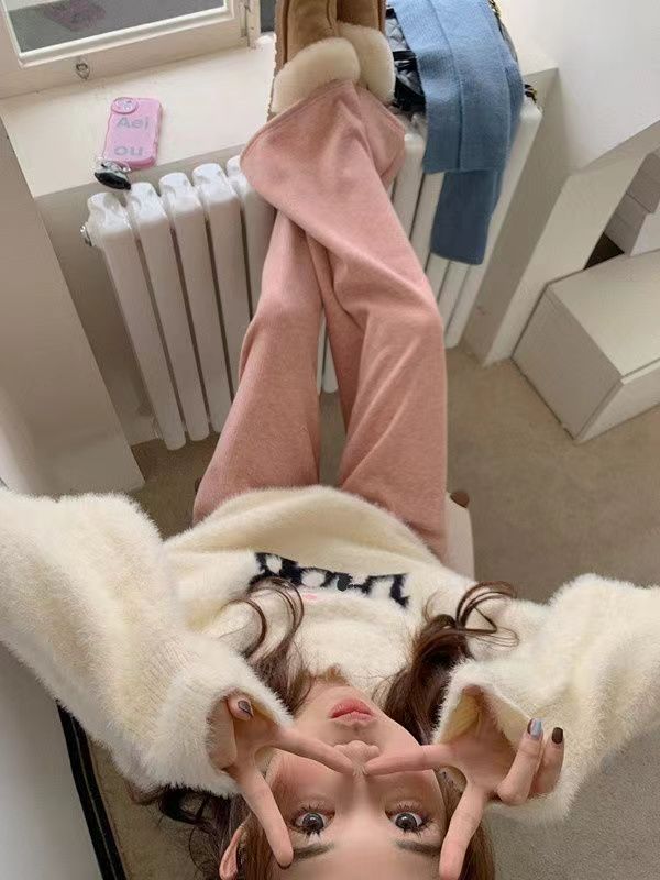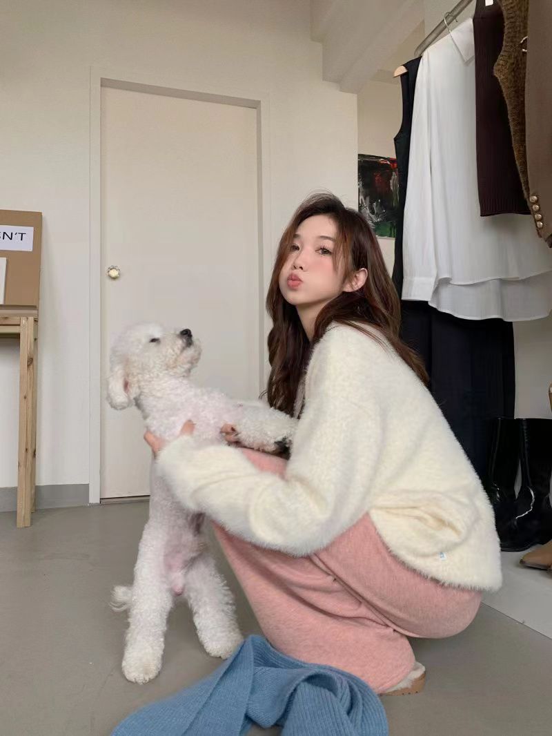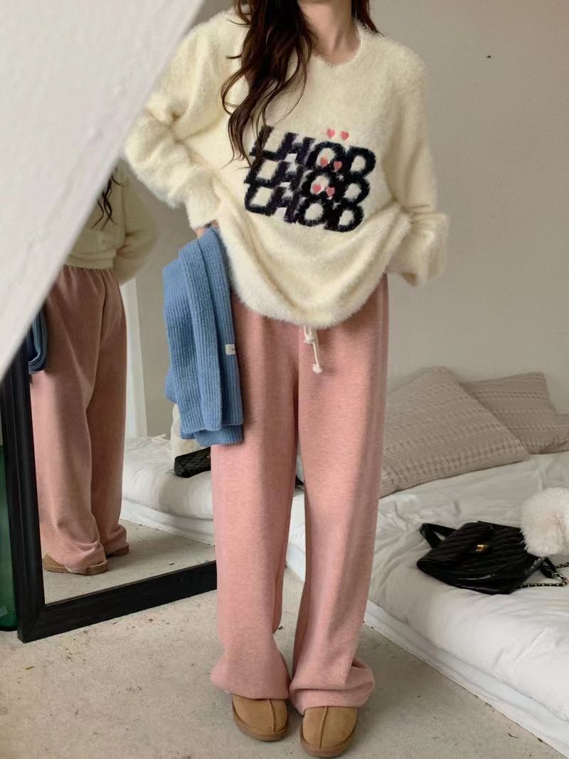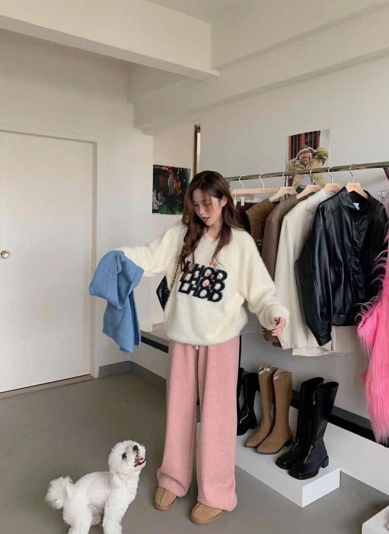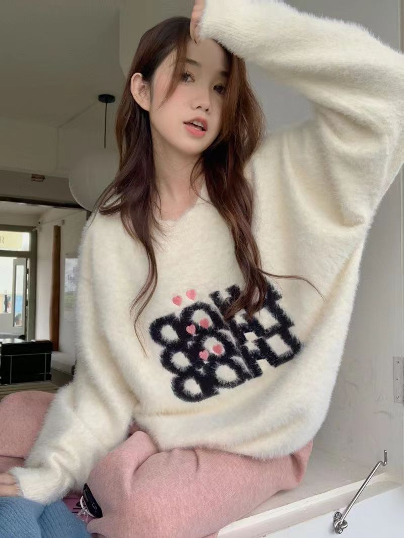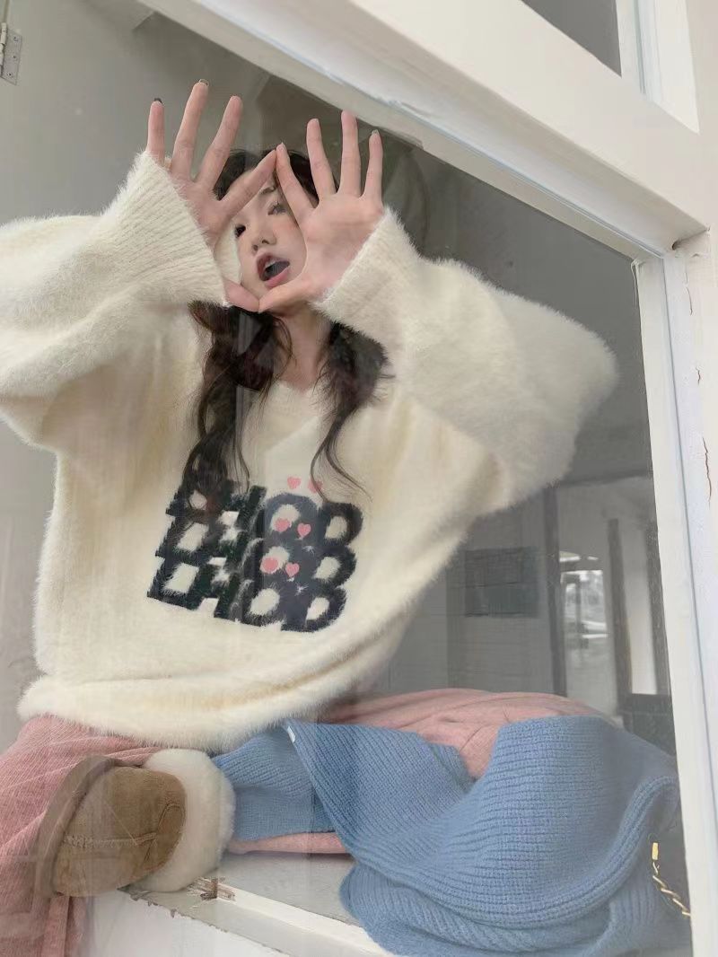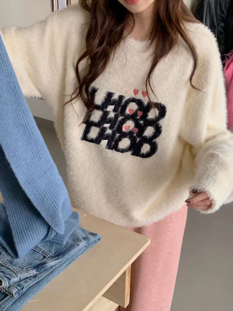 仿水貂绒毛衣秋冬慵懒风女装字母冬季套头宽松针织衫上衣毛衣23123104