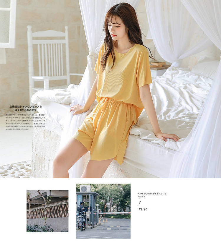 夏季冰爽皇后套裝新款果凍色短褲短袖懶人居家休閒兩件套22050105