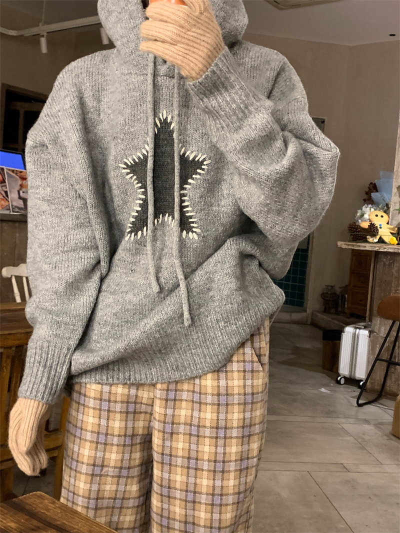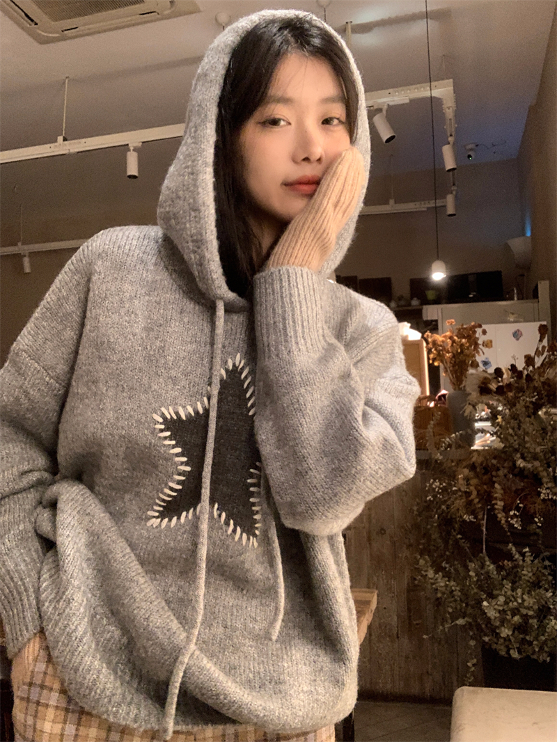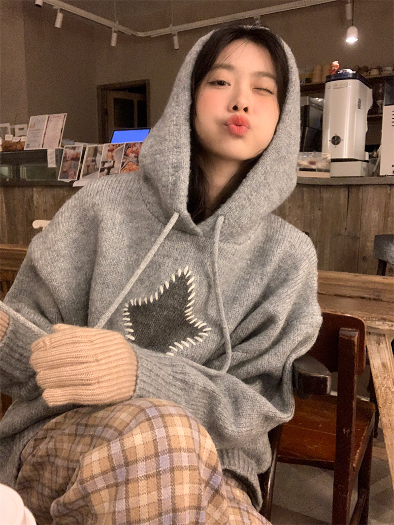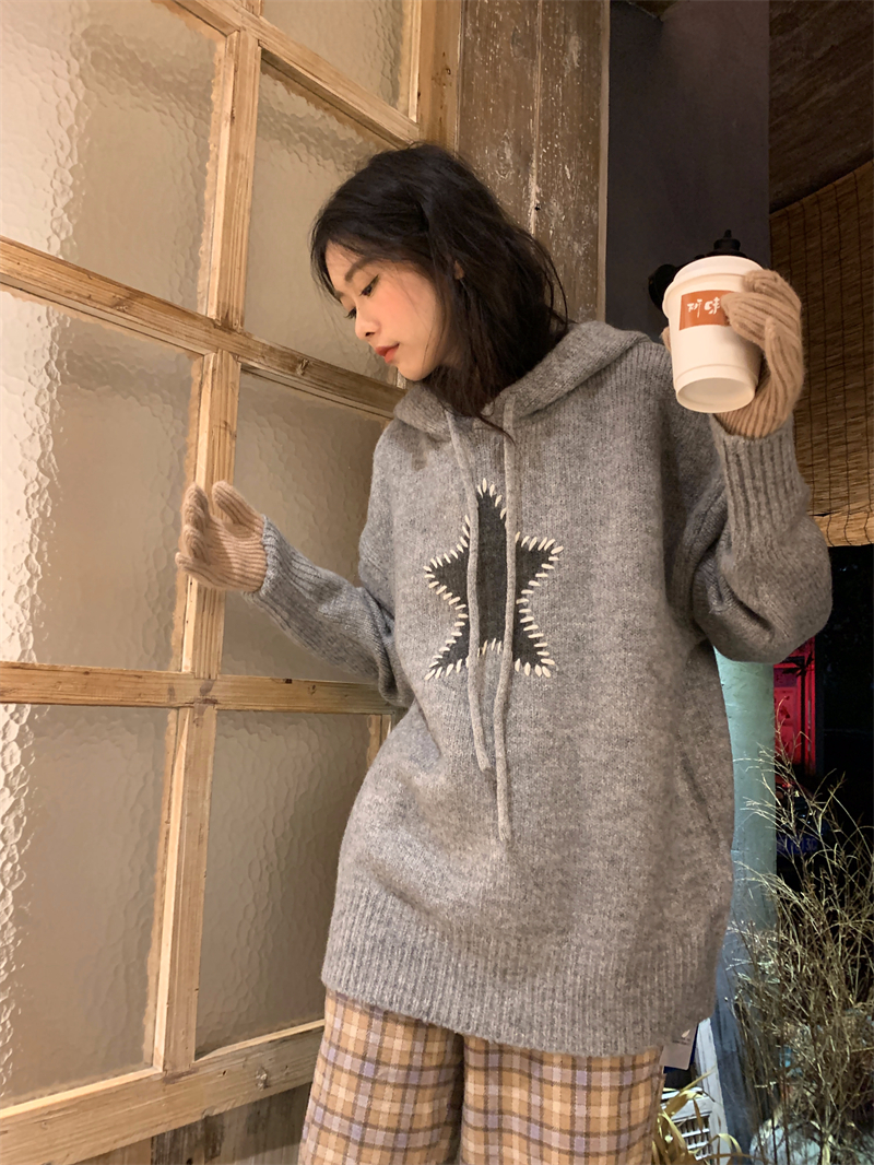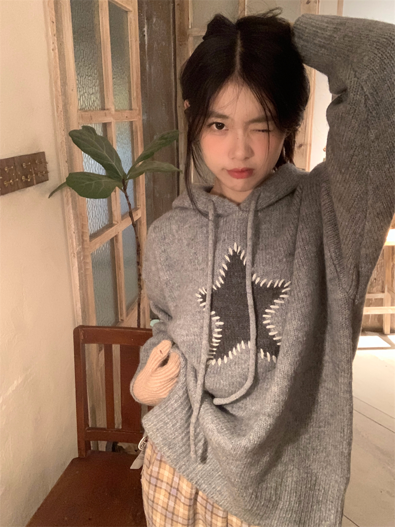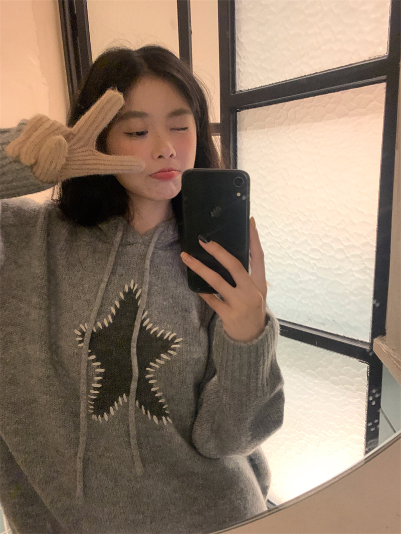星甜妹星星寬松連帽毛衣女慵懶休閒百搭長袖針織衫上衣22113001