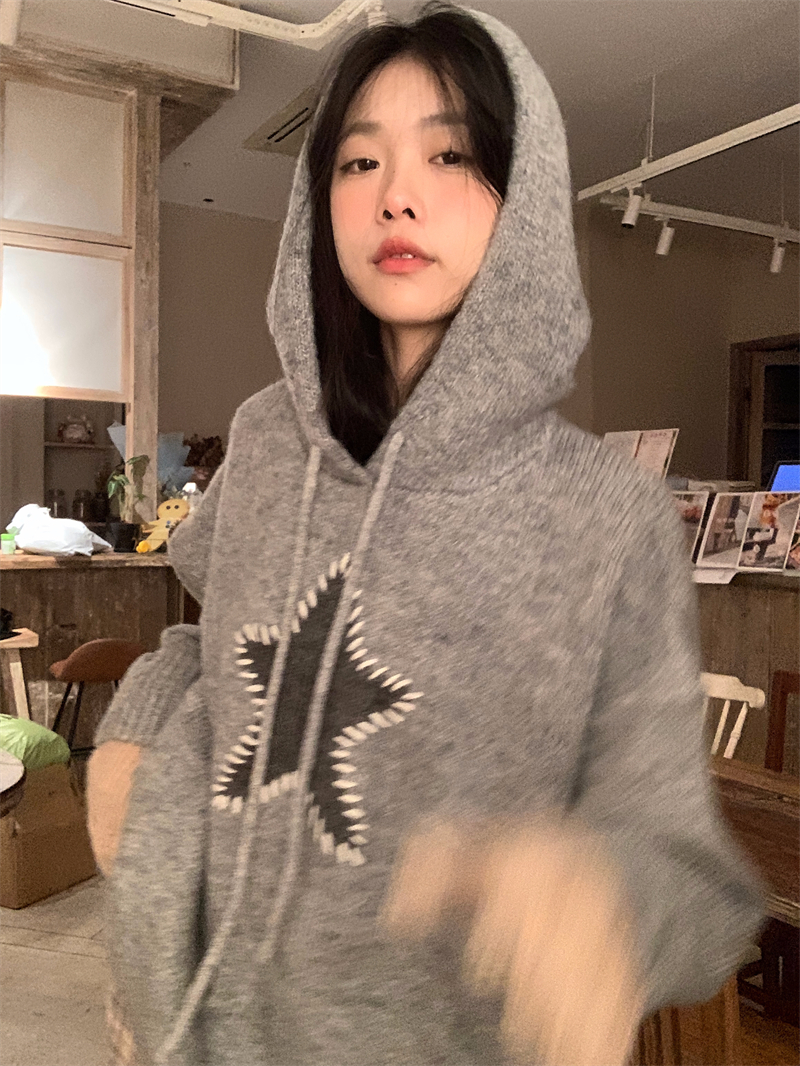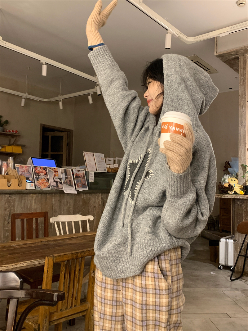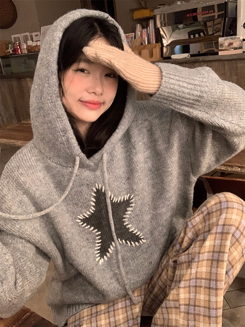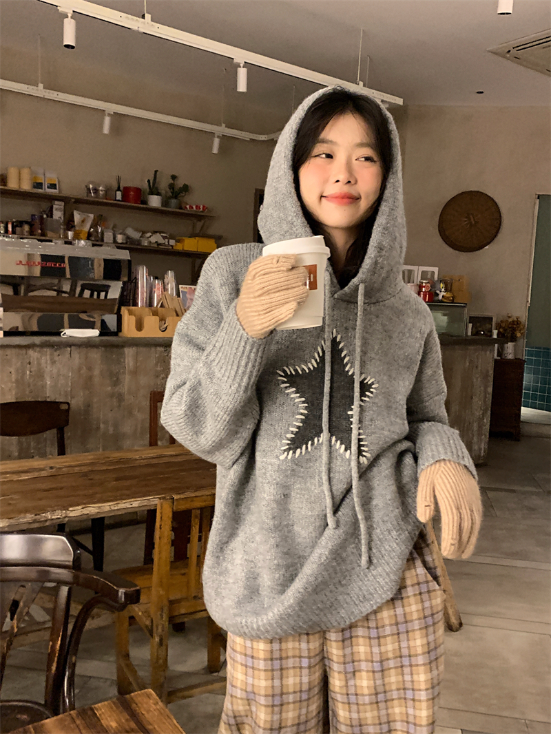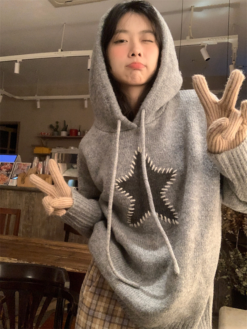 星甜妹星星寬松連帽毛衣女慵懶休閒百搭長袖針織衫上衣22113001
