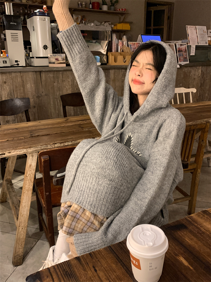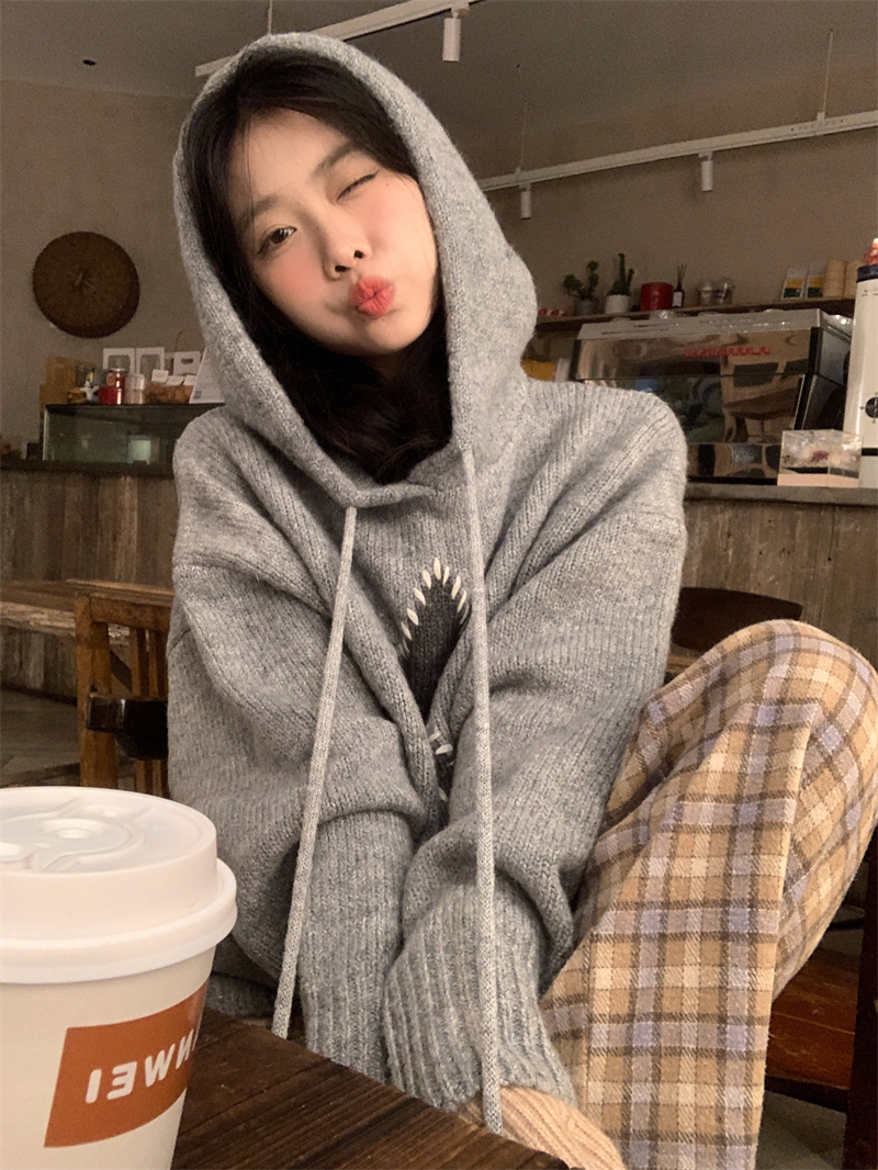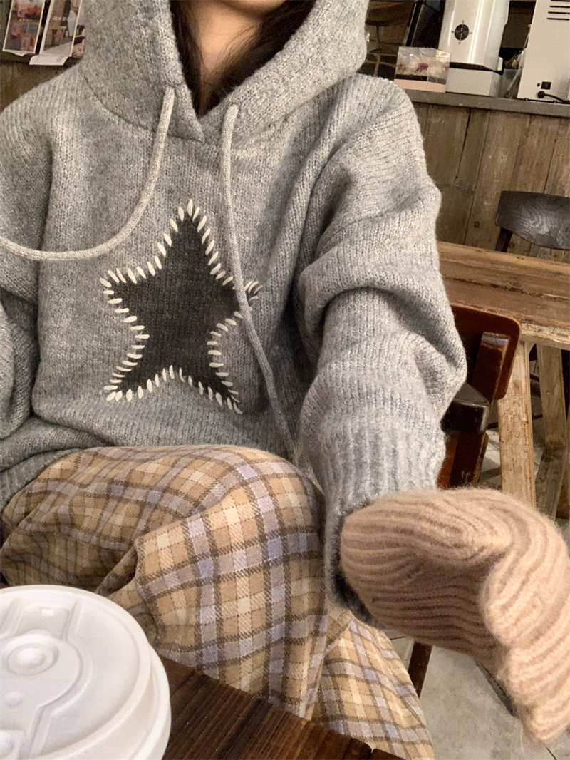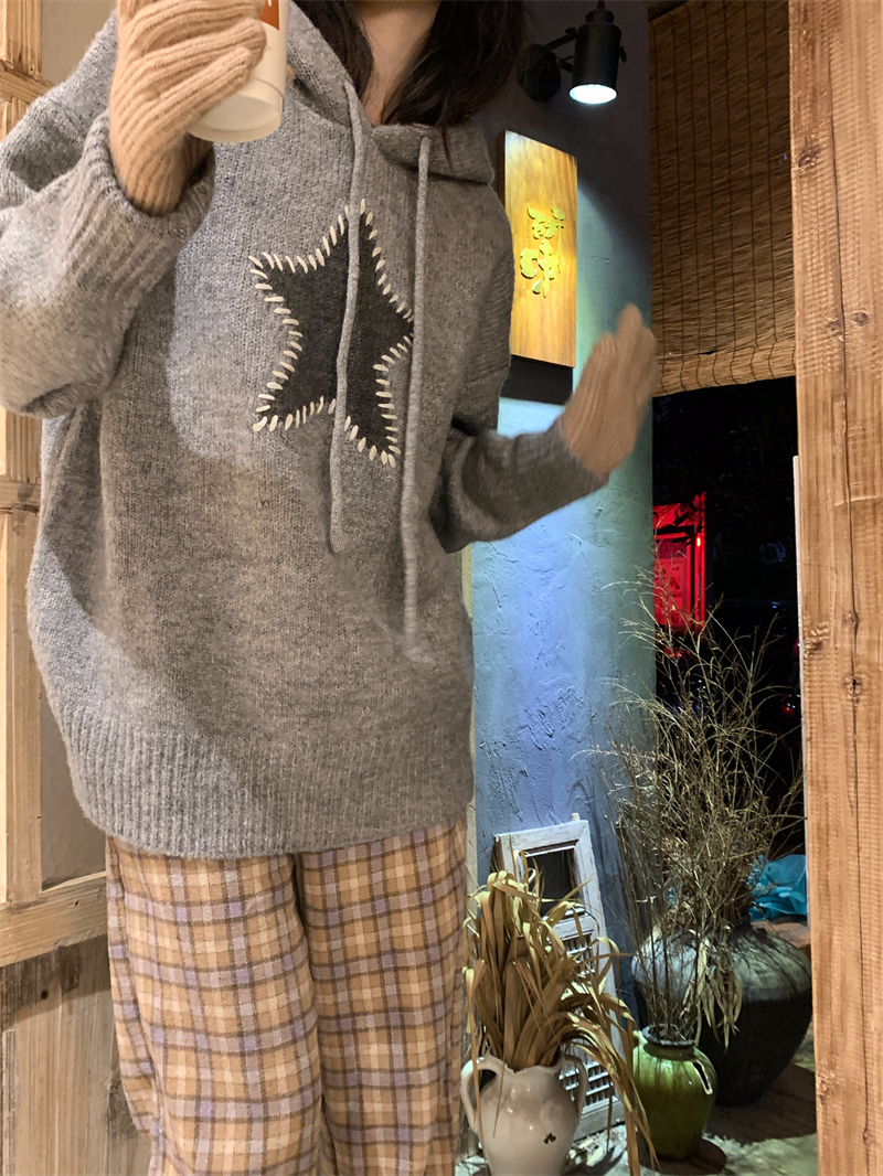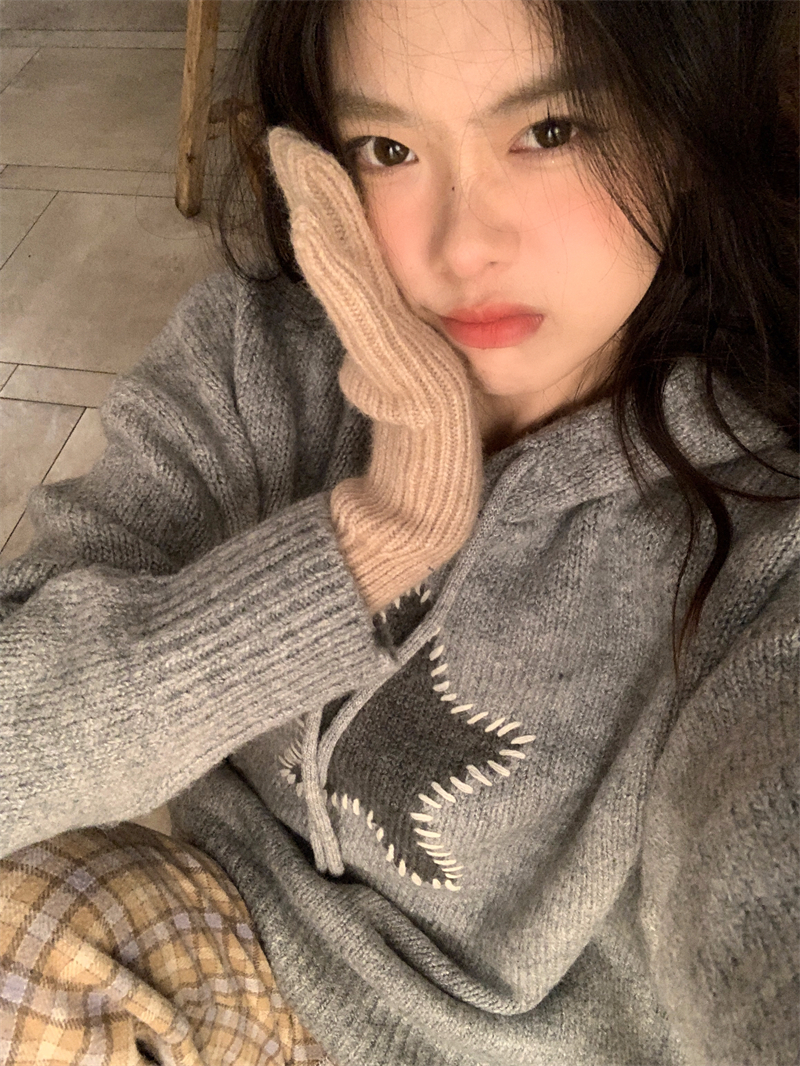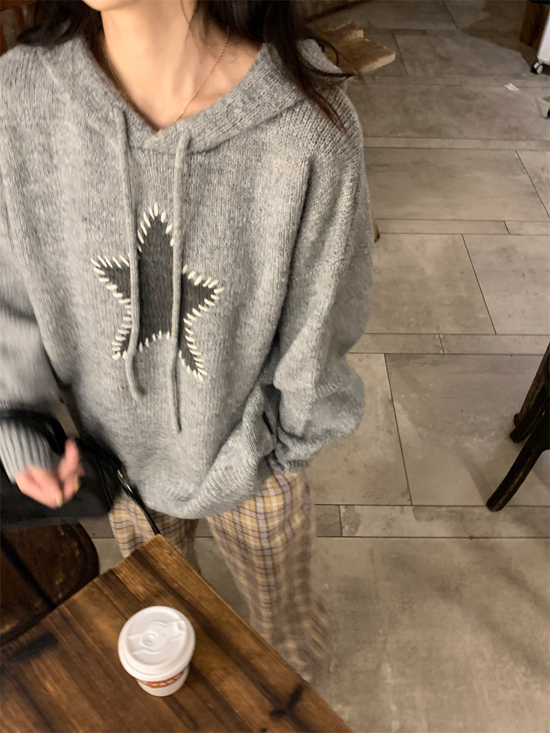 星甜妹星星寬松連帽毛衣女慵懶休閒百搭長袖針織衫上衣22113001
