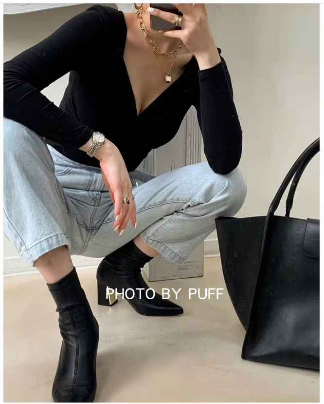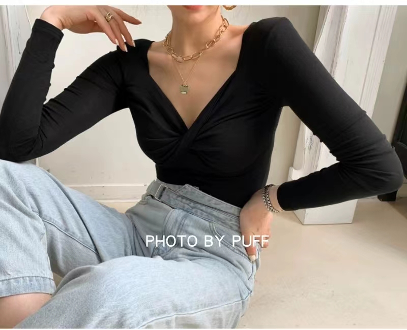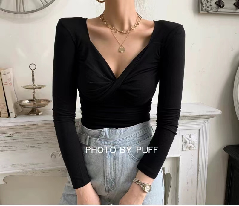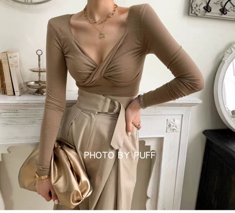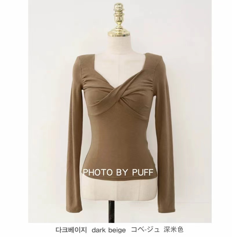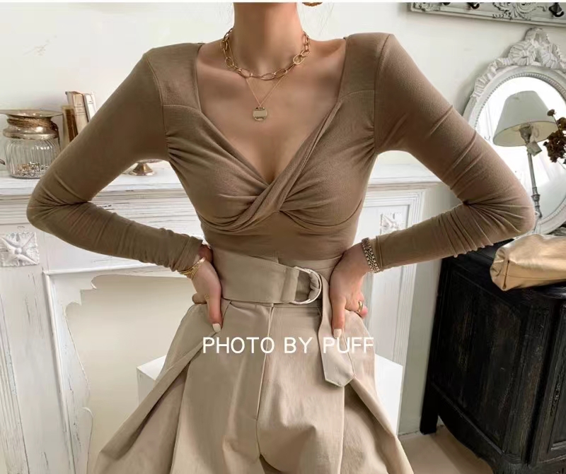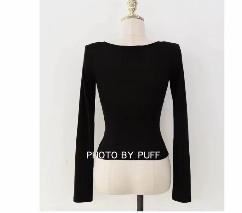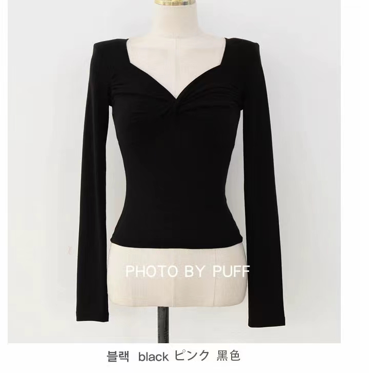 秋季新款韓東大門扭結修身顯瘦方領包身長袖T恤上衣Tshirtcoat23091401