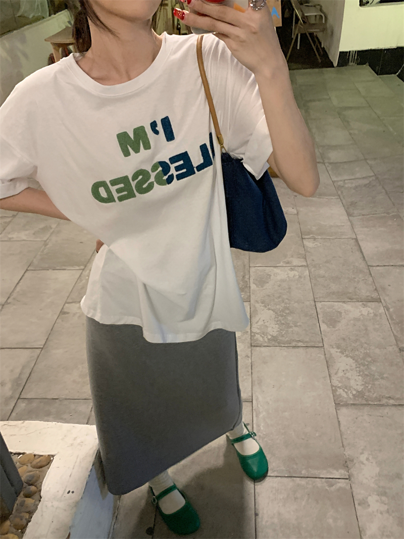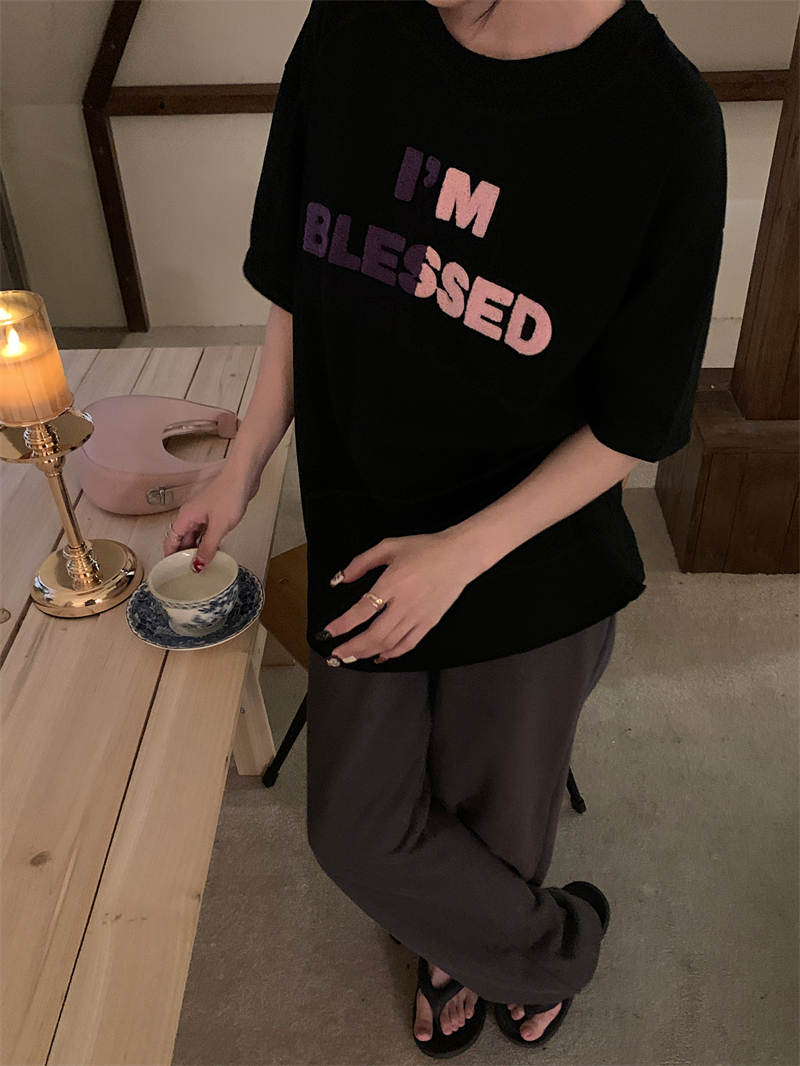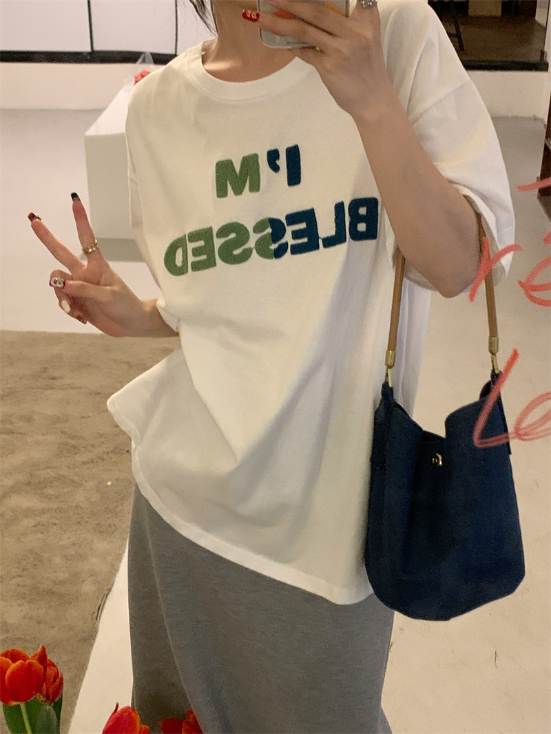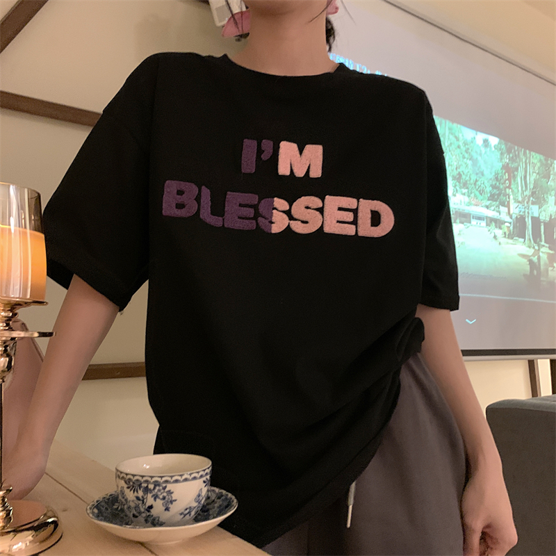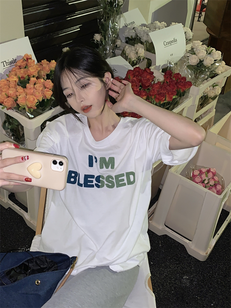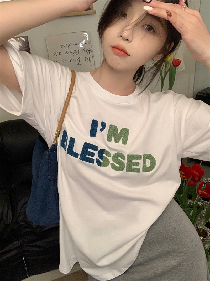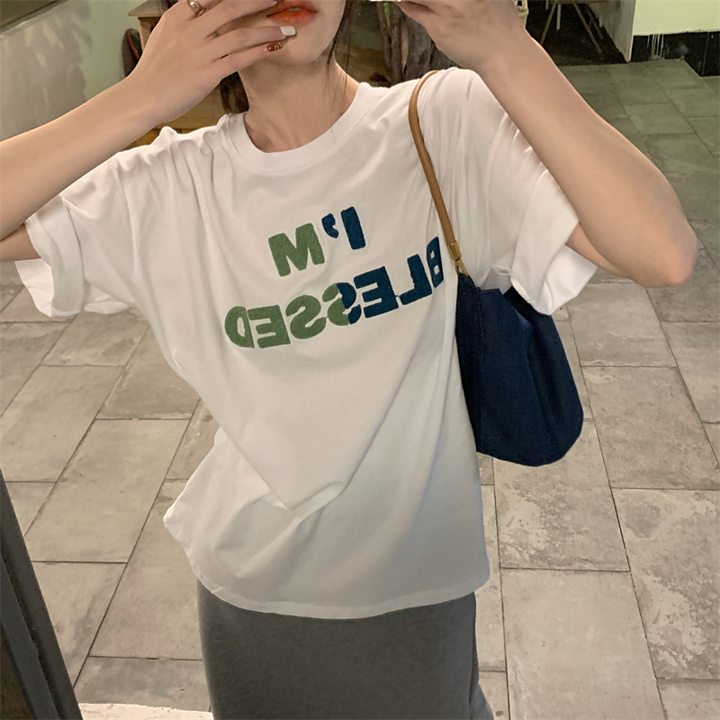 粉墨練習生~夏季學院休閒字母植絨設計寬鬆百搭圓領短袖T恤22051906