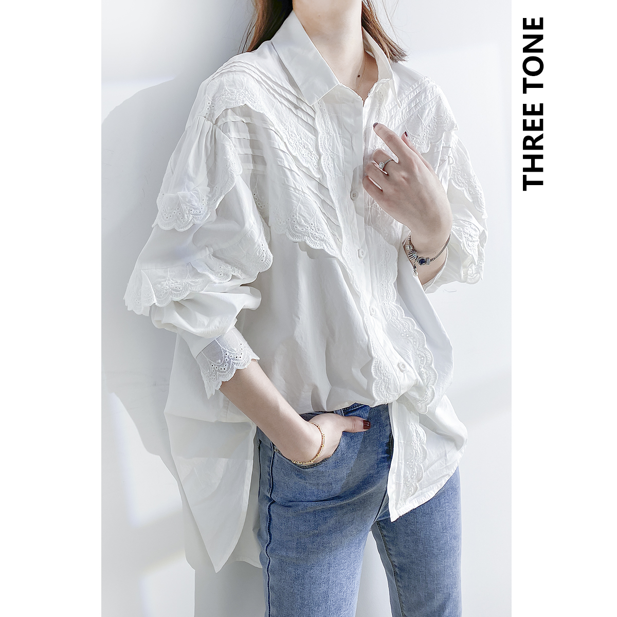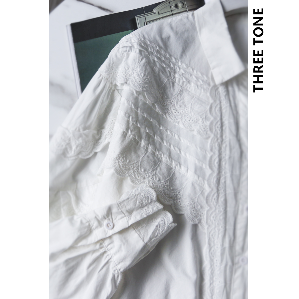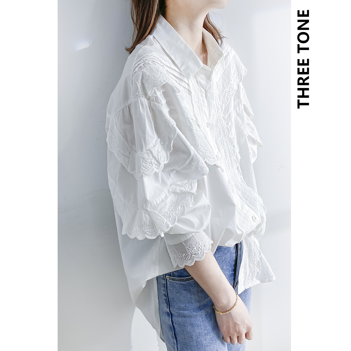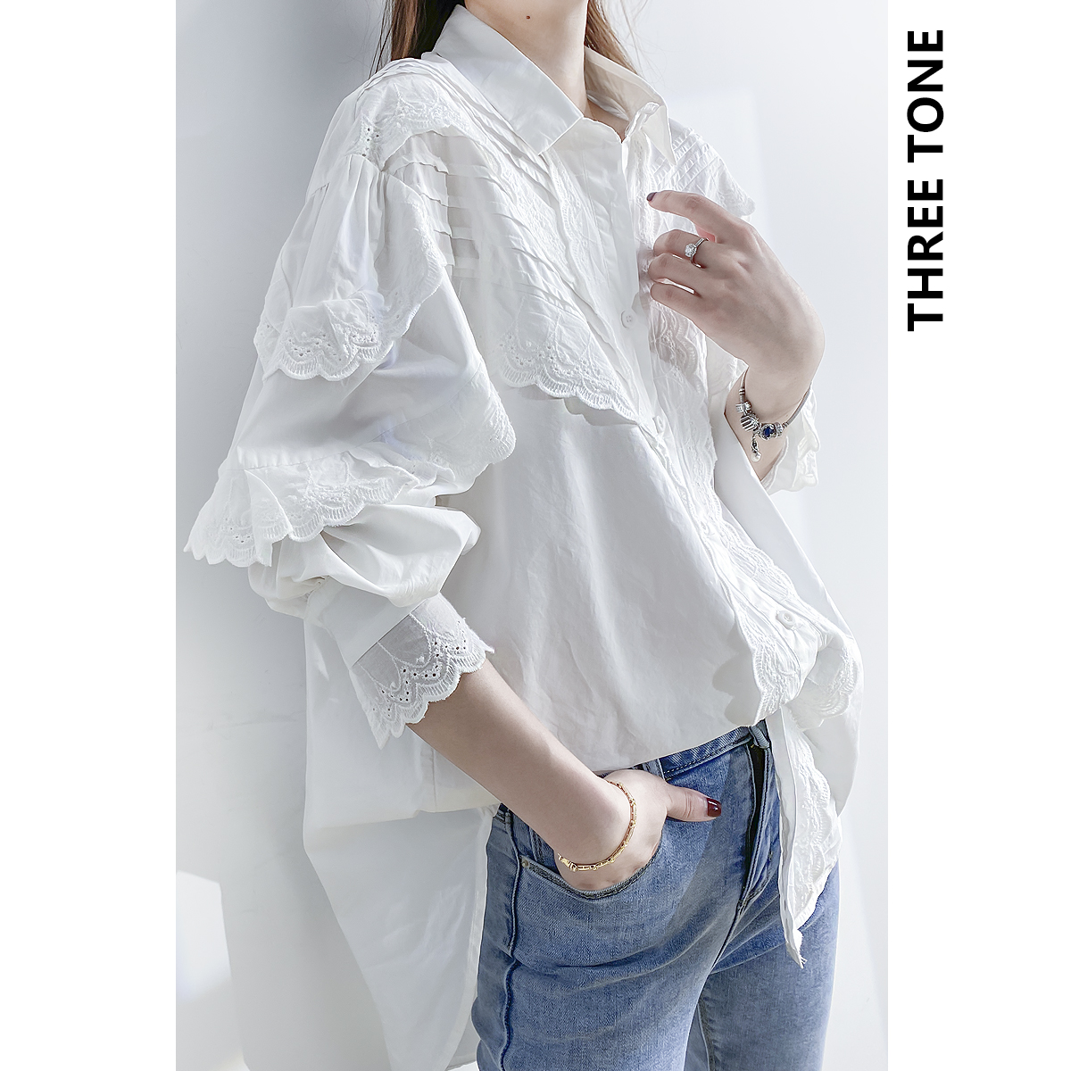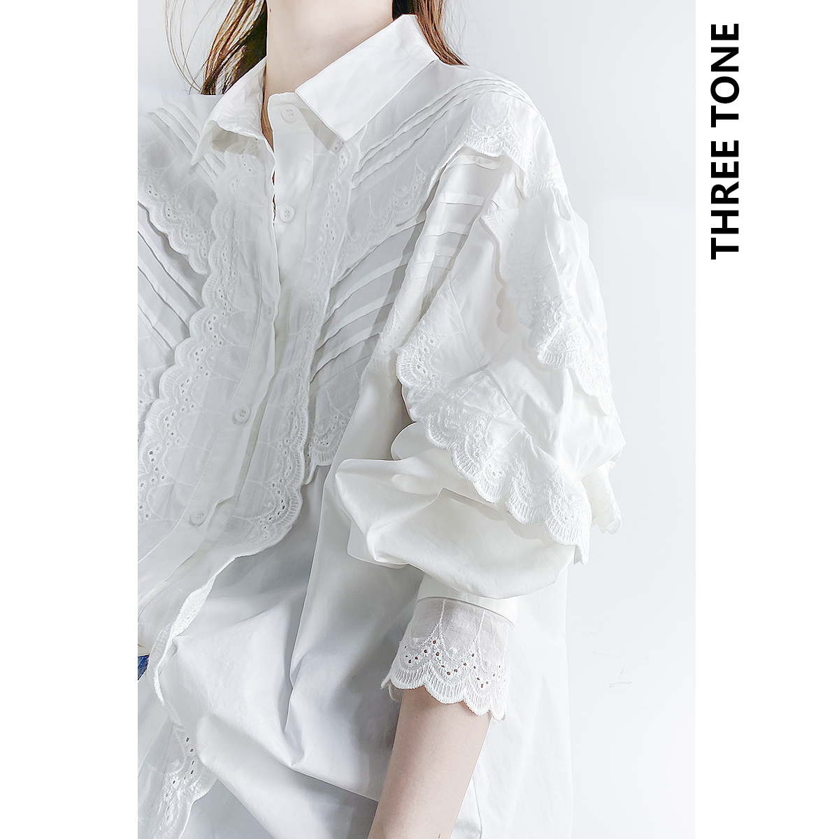 蕾絲如同天使的翅膀重工刺繡白色襯衫寬松襯衣女21070106