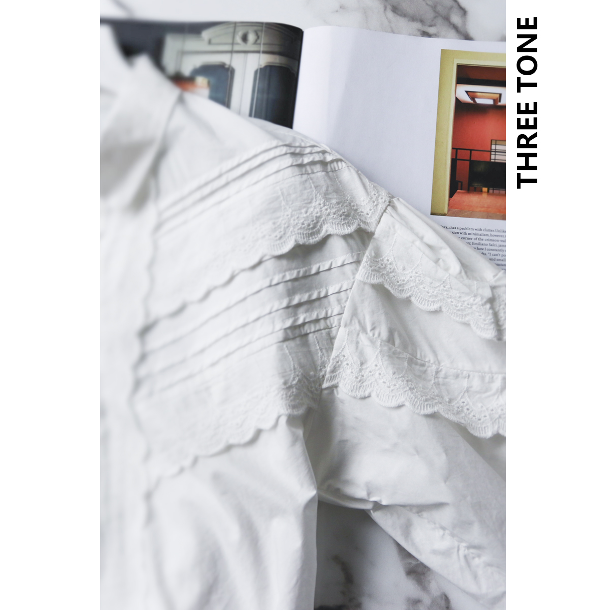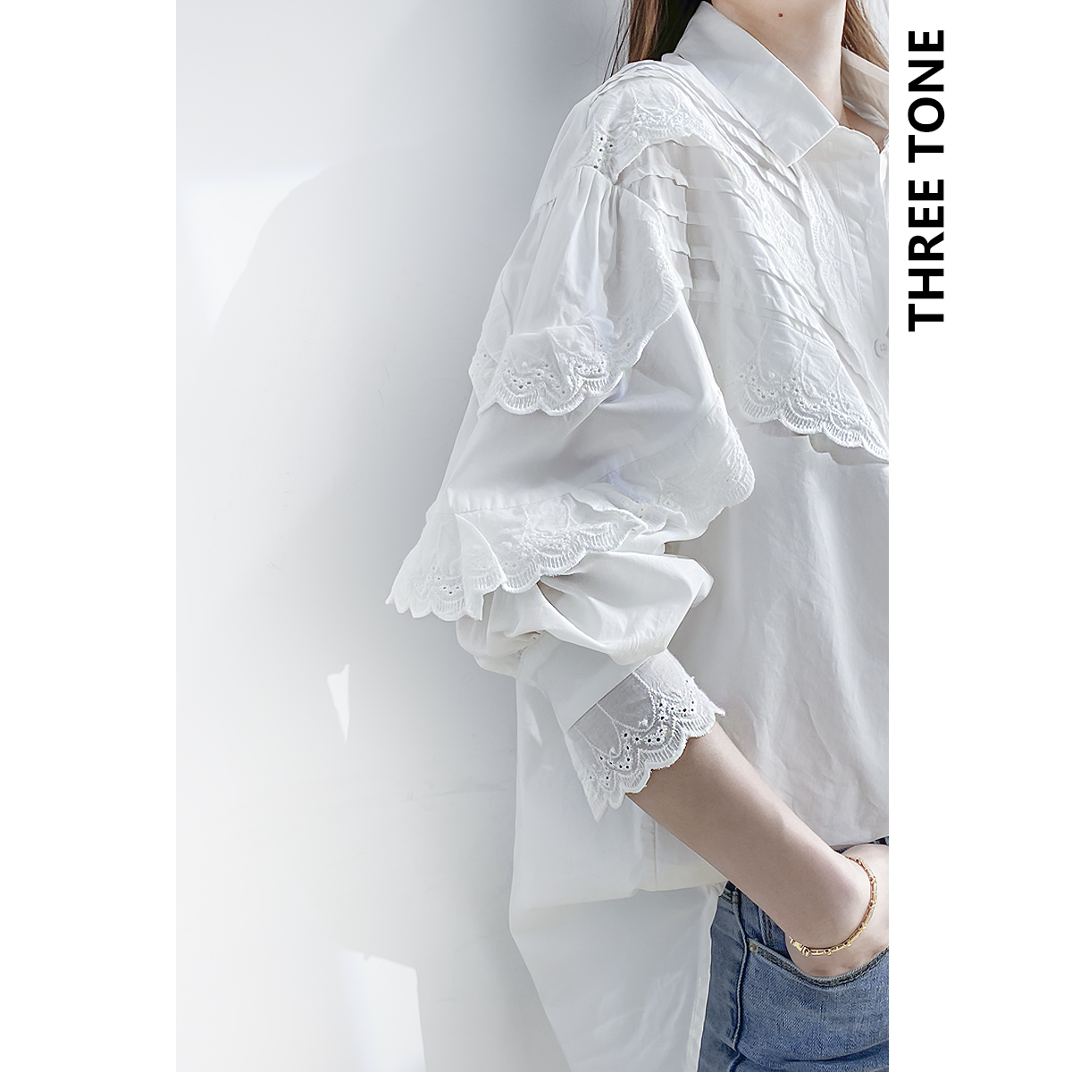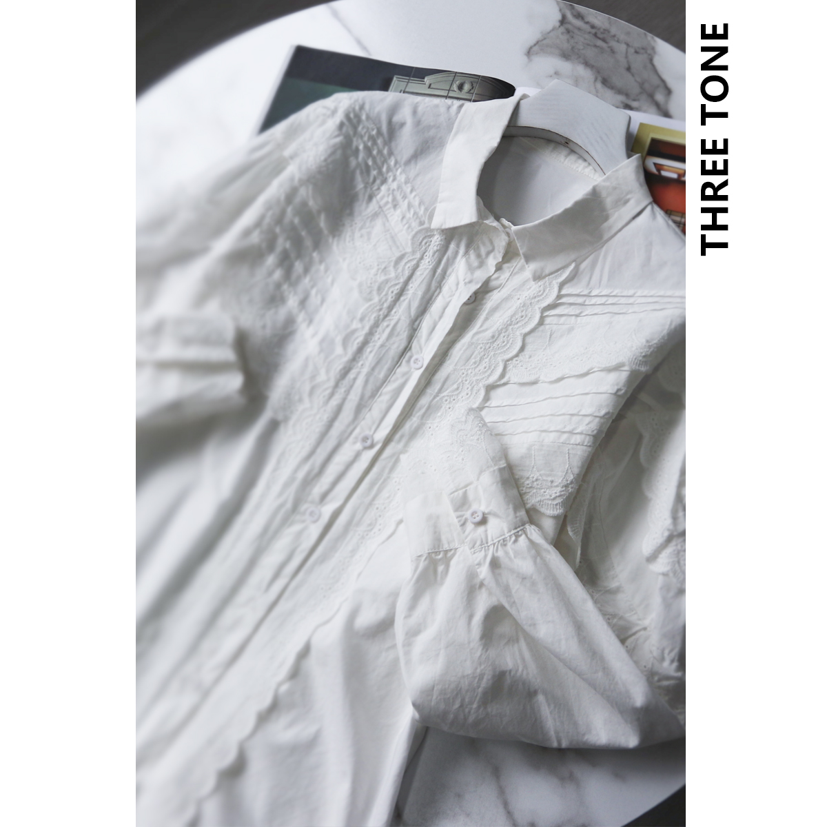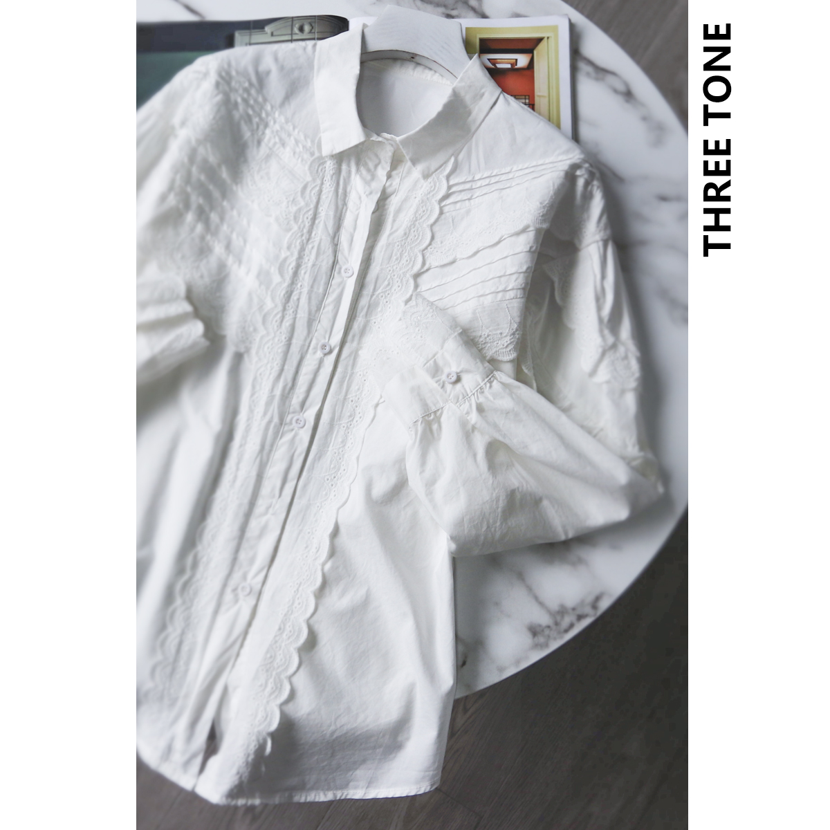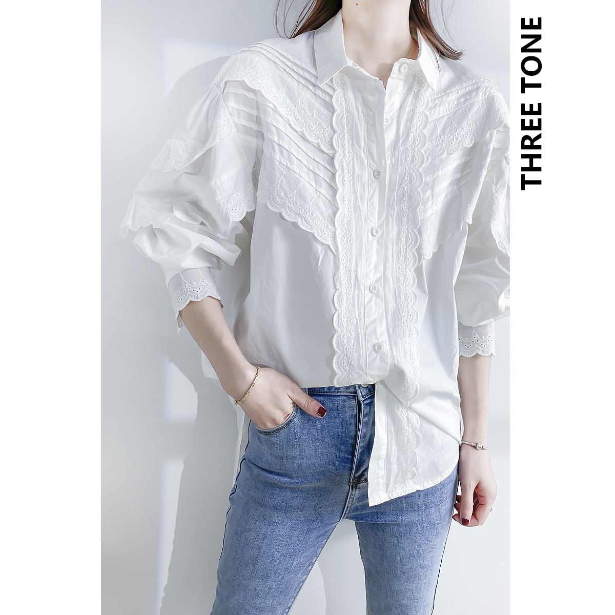 蕾絲如同天使的翅膀重工刺繡白色襯衫寬松襯衣女21070106