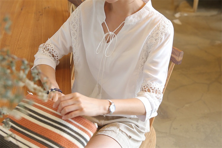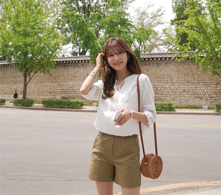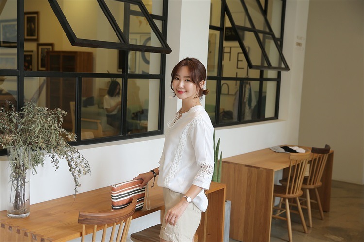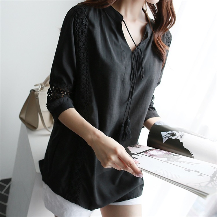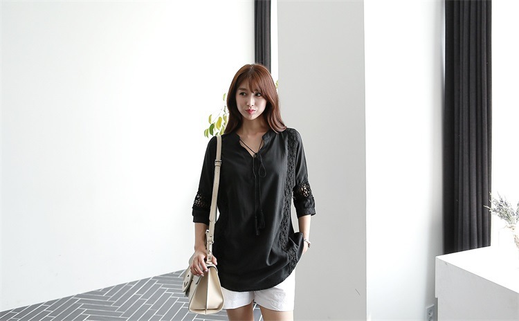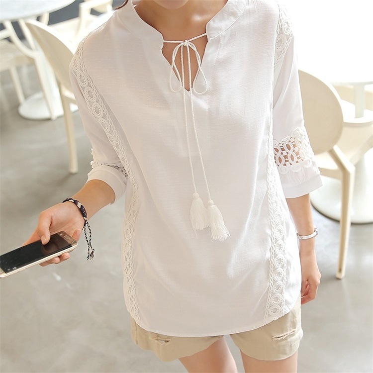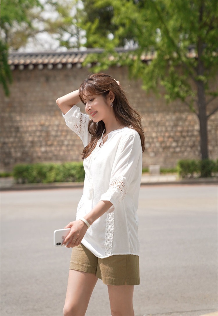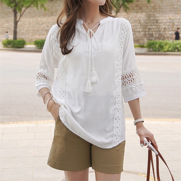 韓版夏裝新款女裝蕾絲拼接裝飾寬鬆顯瘦T恤女短袖上衣22062107