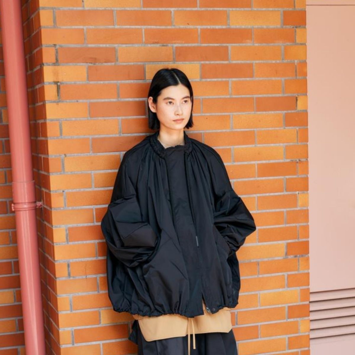 韓版日本貴牌小眾潮牌設計感寬松a字娃娃短款燈籠袖抽繩夾克風衣外套25120802