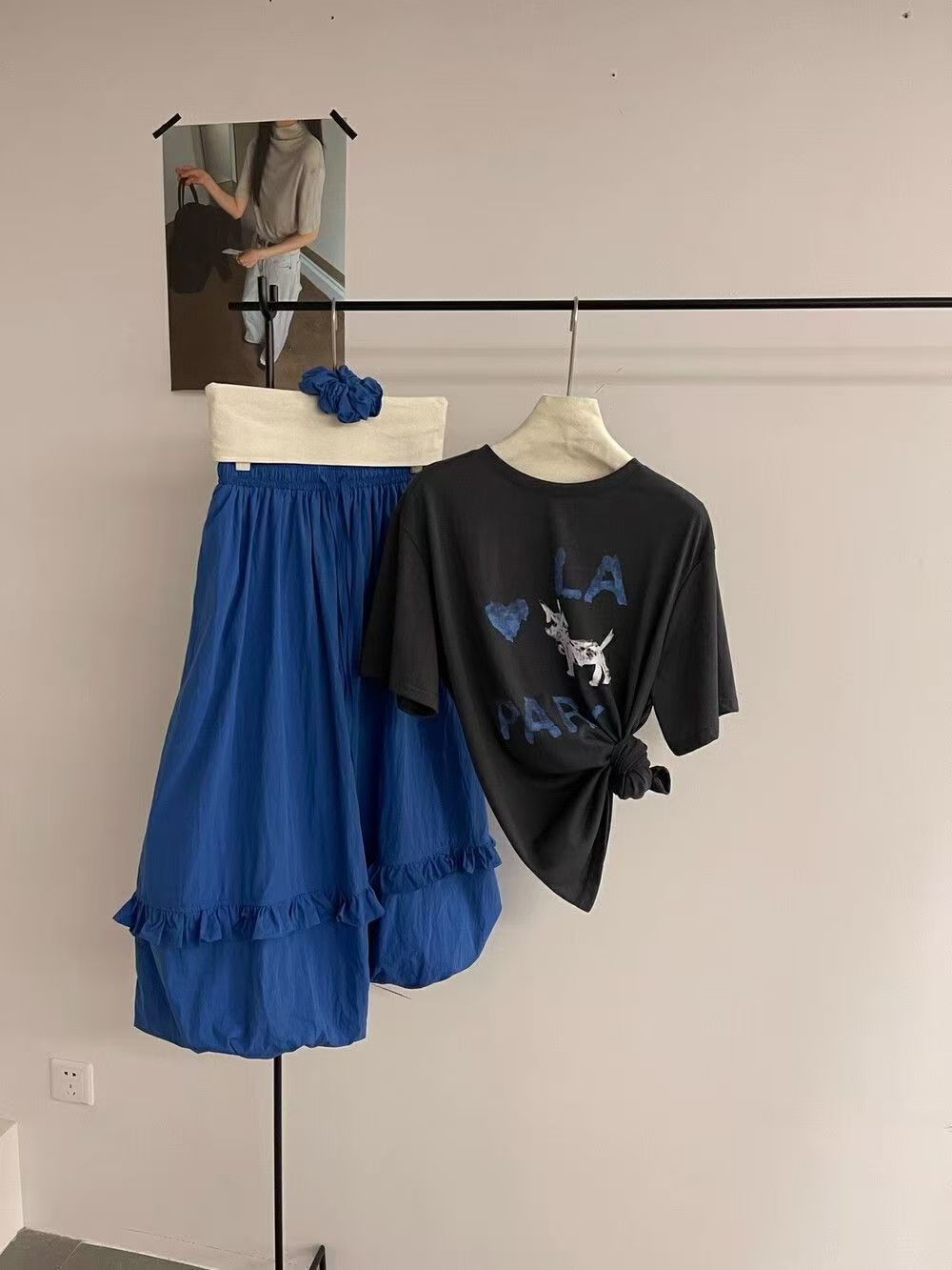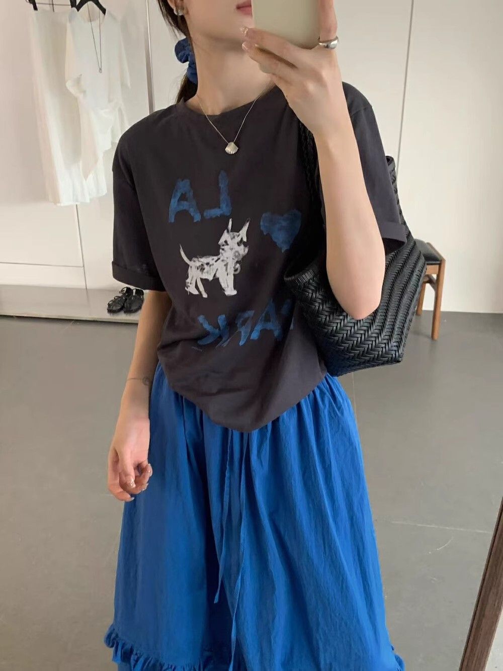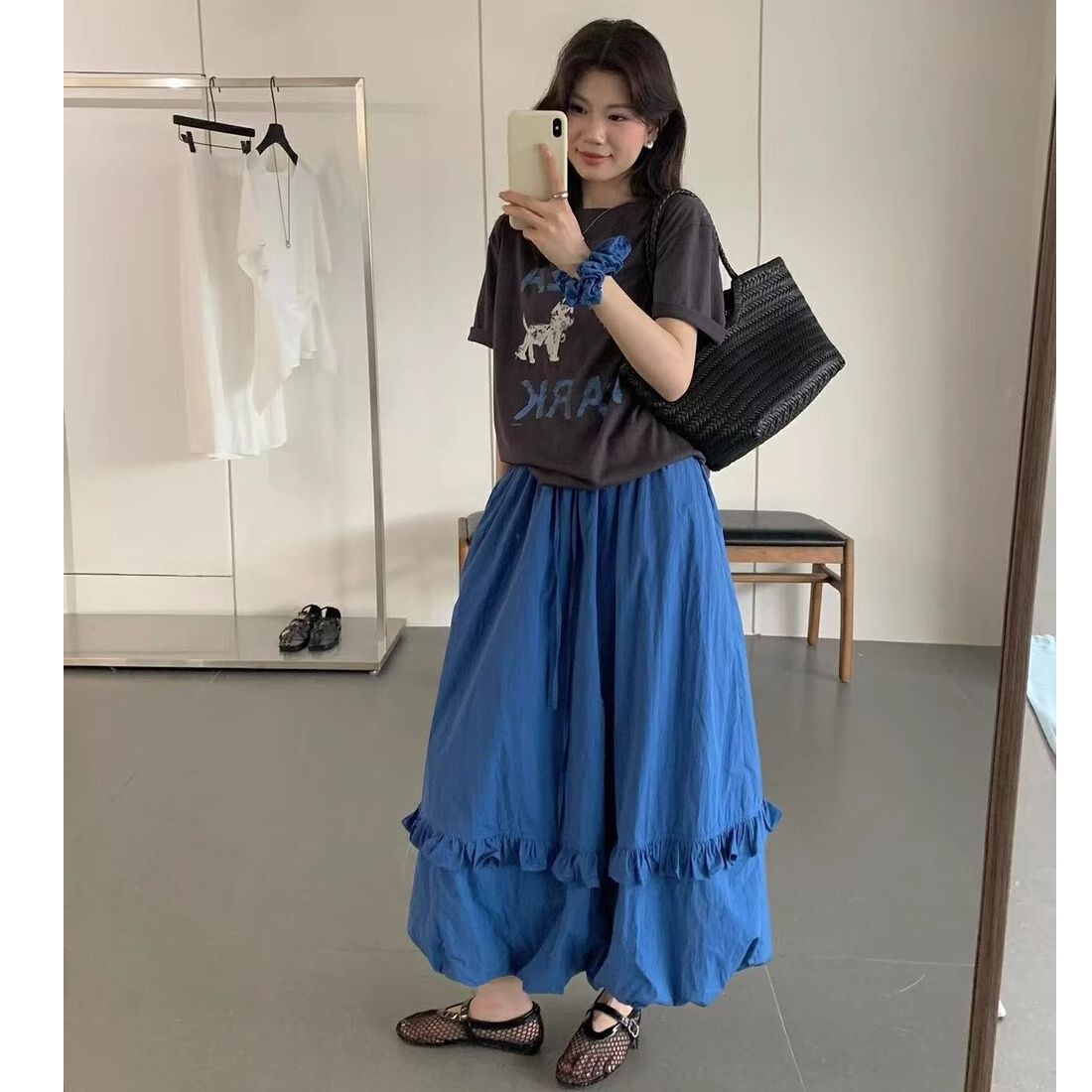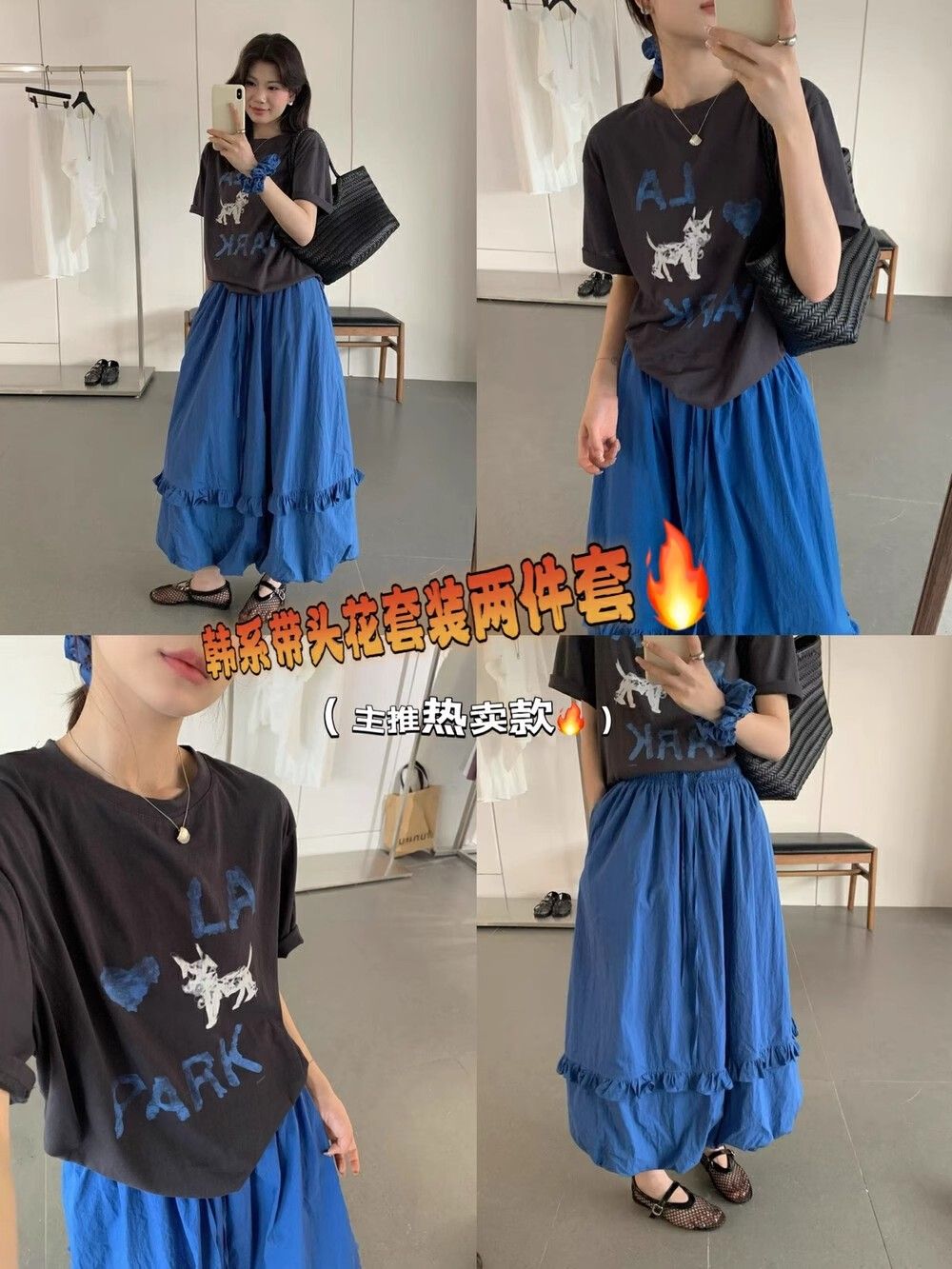 韓系夏季氛圍感狗狗短袖T恤花苞半身裙時尚兩件套裝配發圈26042604