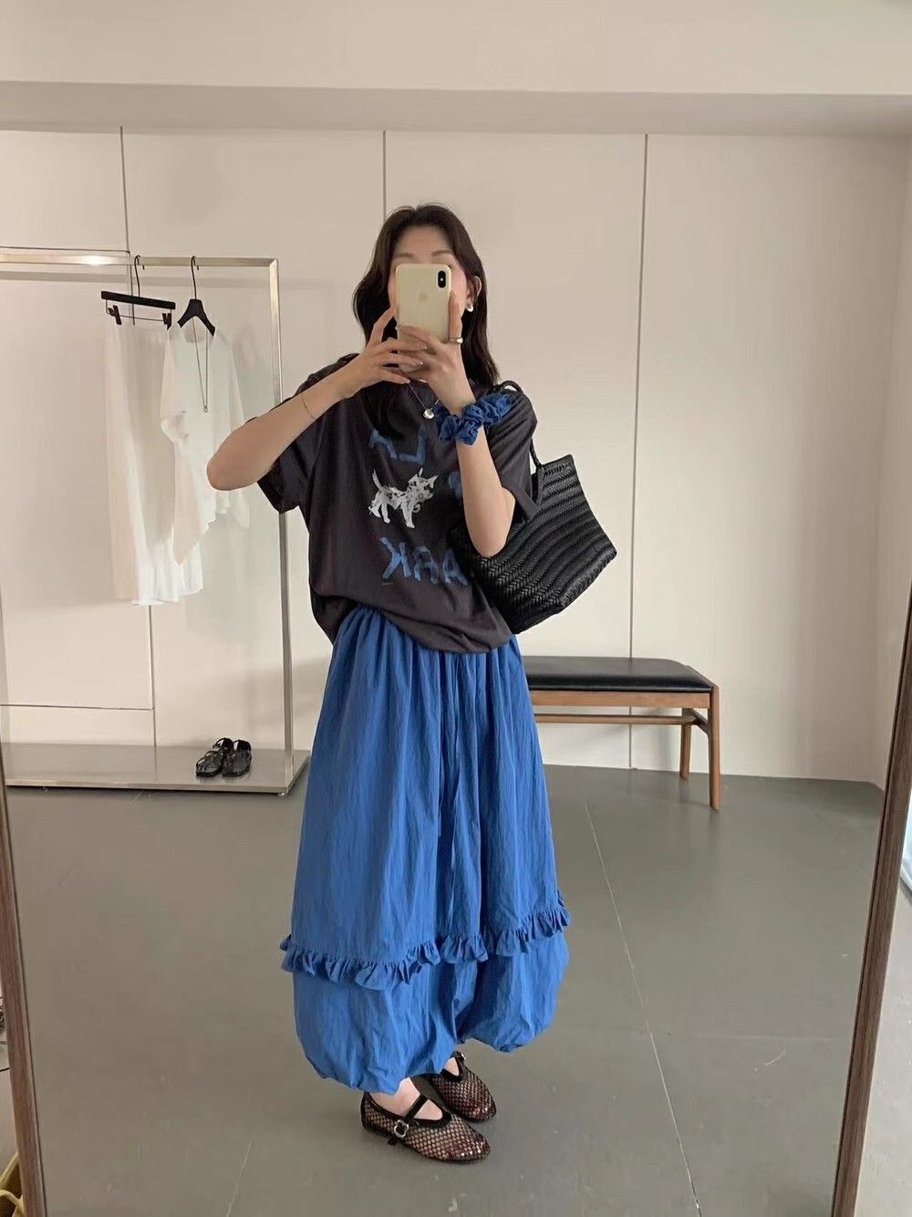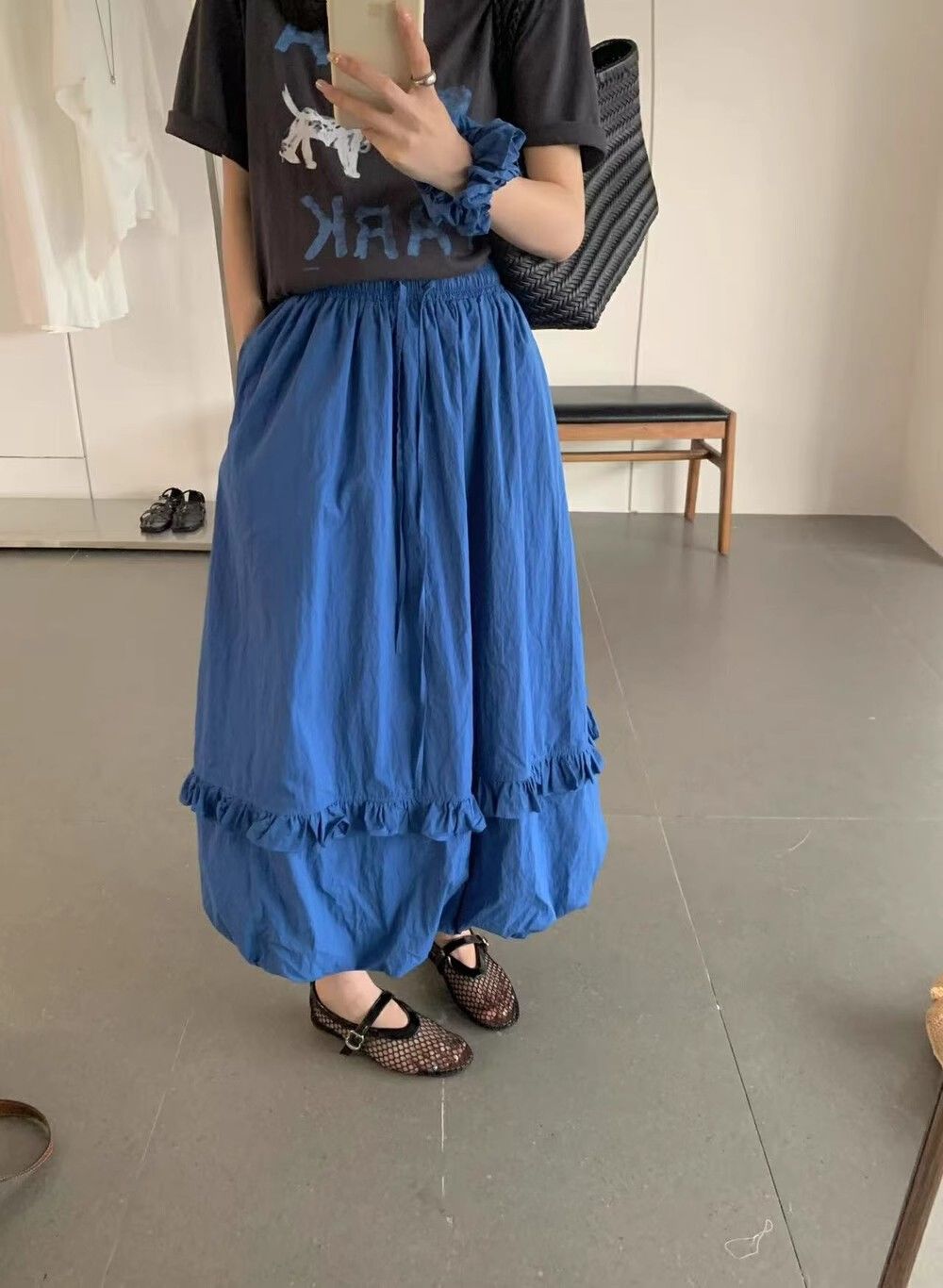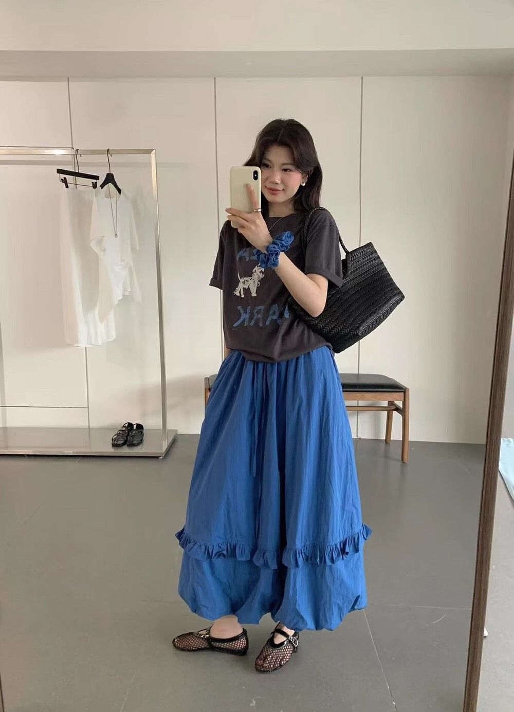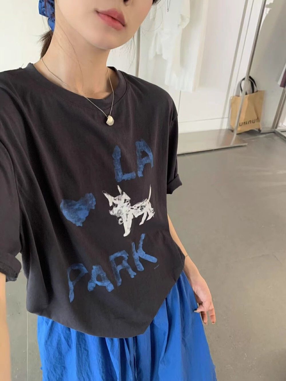 韓系夏季氛圍感狗狗短袖T恤花苞半身裙時尚兩件套裝配發圈26042604