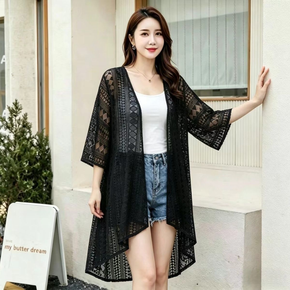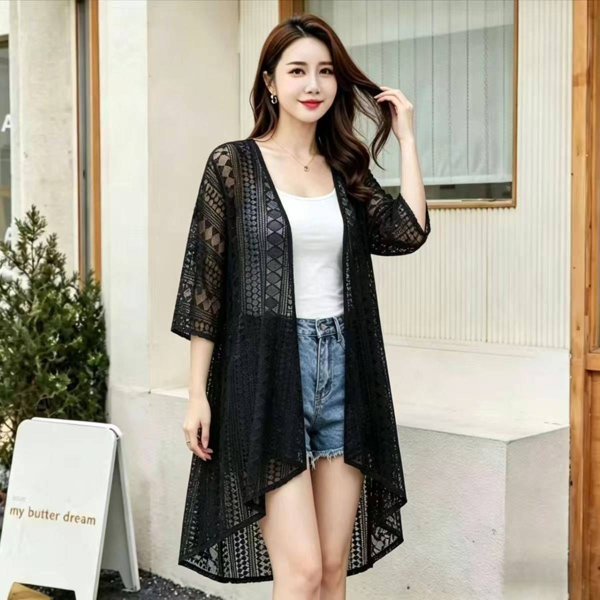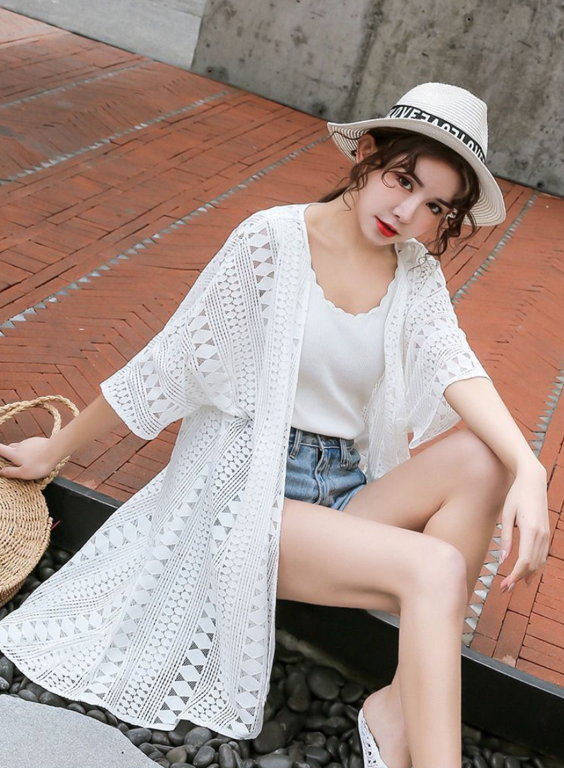 韓系新款防曬衣中長款夏季韓版蕾絲開衫外搭披肩薄款女外套寬松潮沙灘26042504