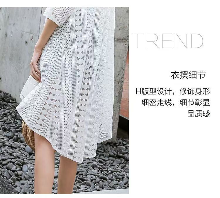 韓系鏤空鈎花蕾絲連衣裙女夏季設計感長款防曬開衫外套26042503