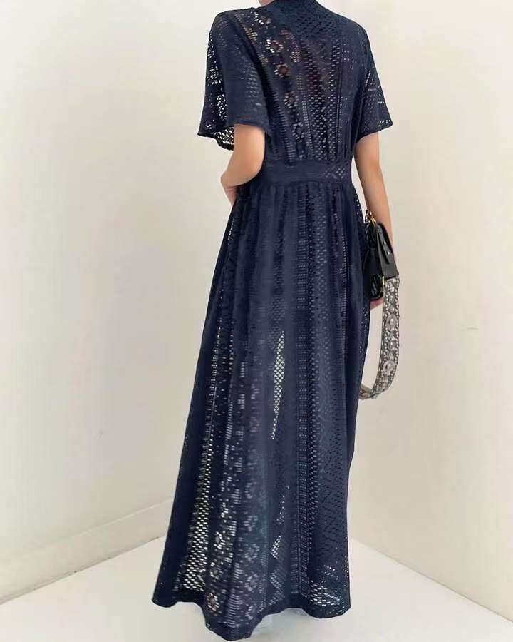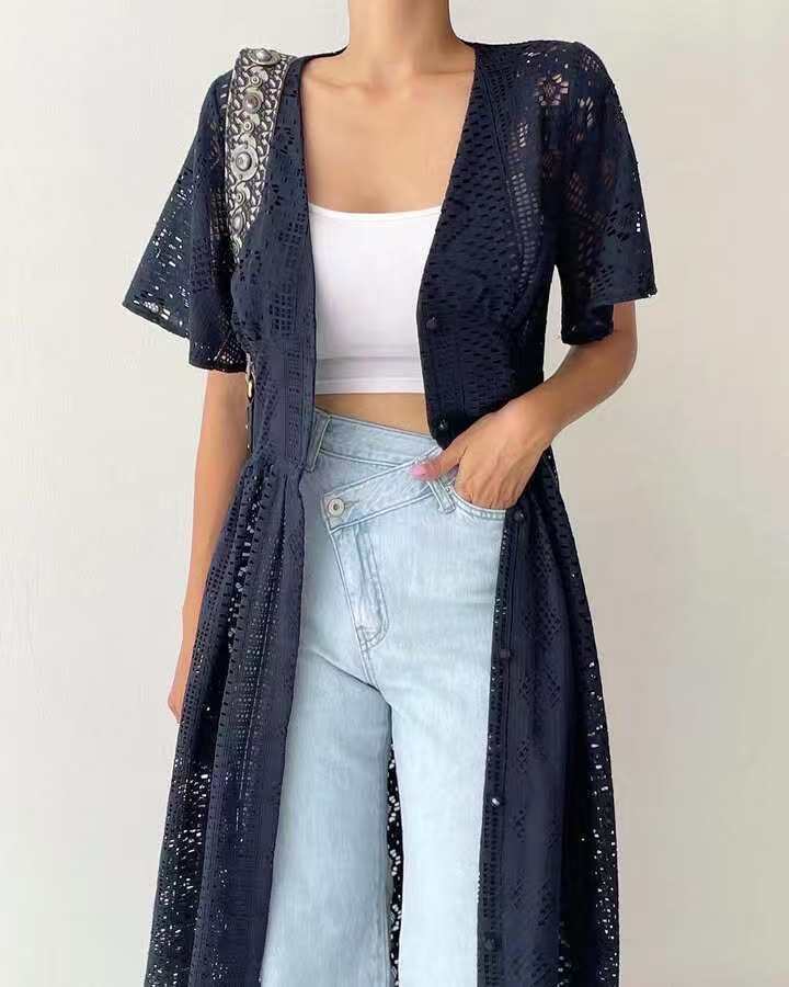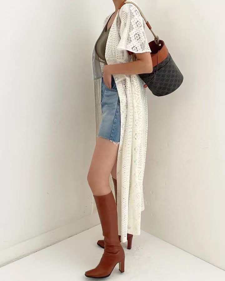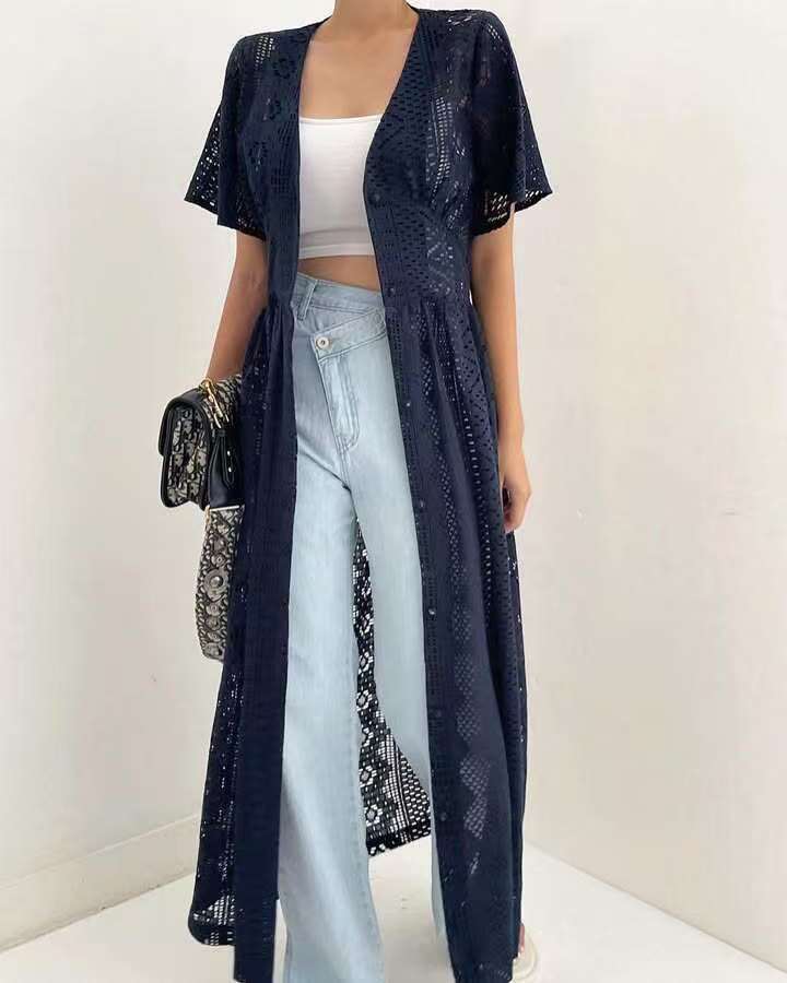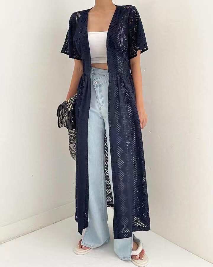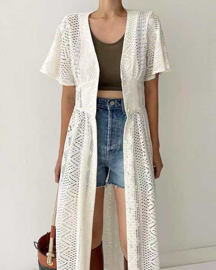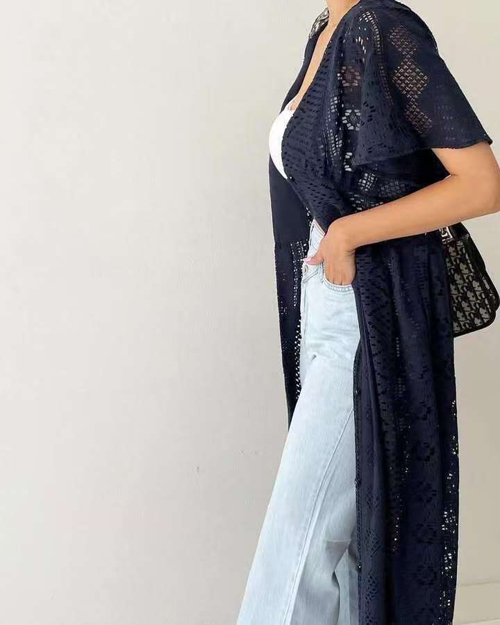 韓系鏤空鈎花蕾絲連衣裙女夏季設計感長款防曬開衫外套26042503
