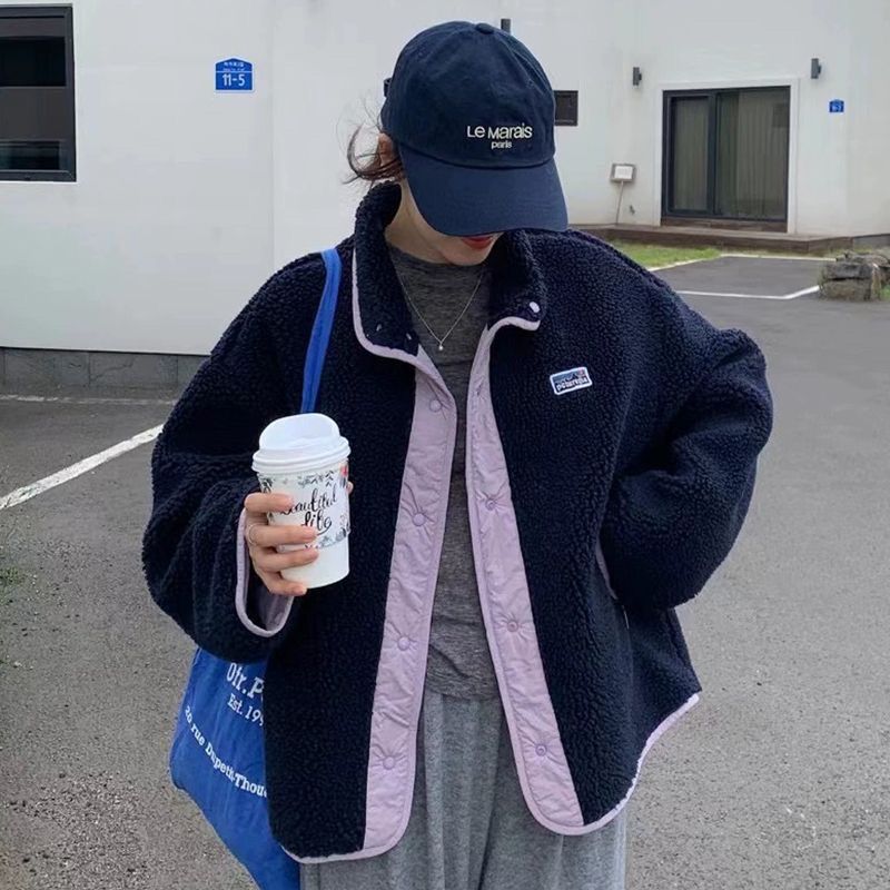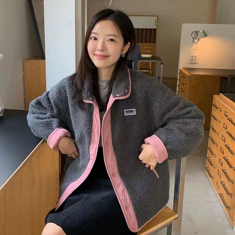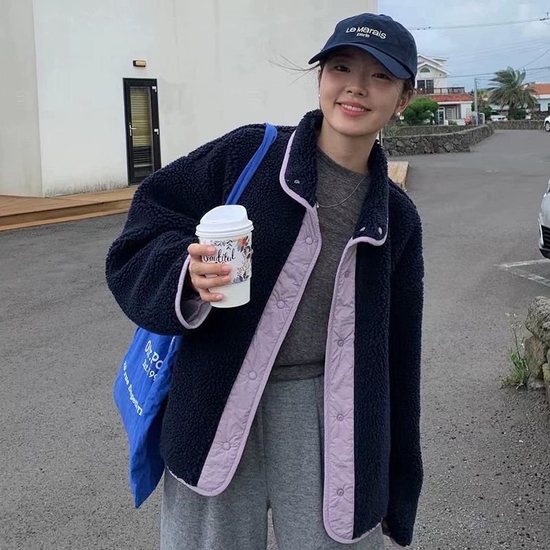 韓版兩面穿羊羔毛棉衣外套女冬季高級感休閒減齡夾棉加厚保暖棉服上衣25111403